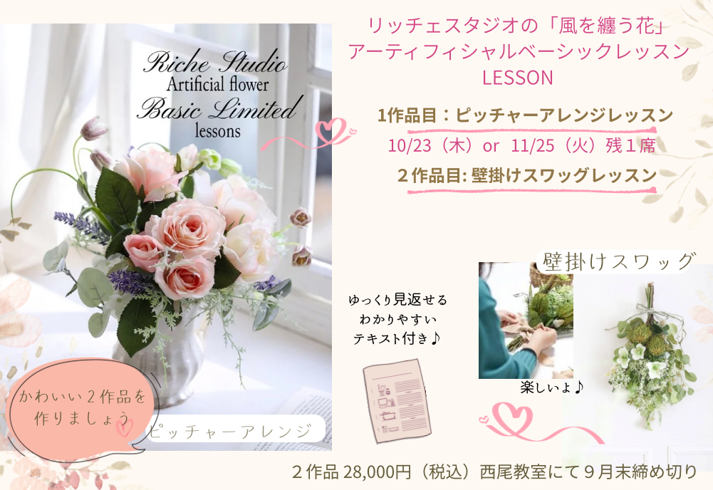 <受付終了>初心者さん大歓迎♪かわいい2作品が作れるアーティフィシャルフラワーベーシックコース西尾教室